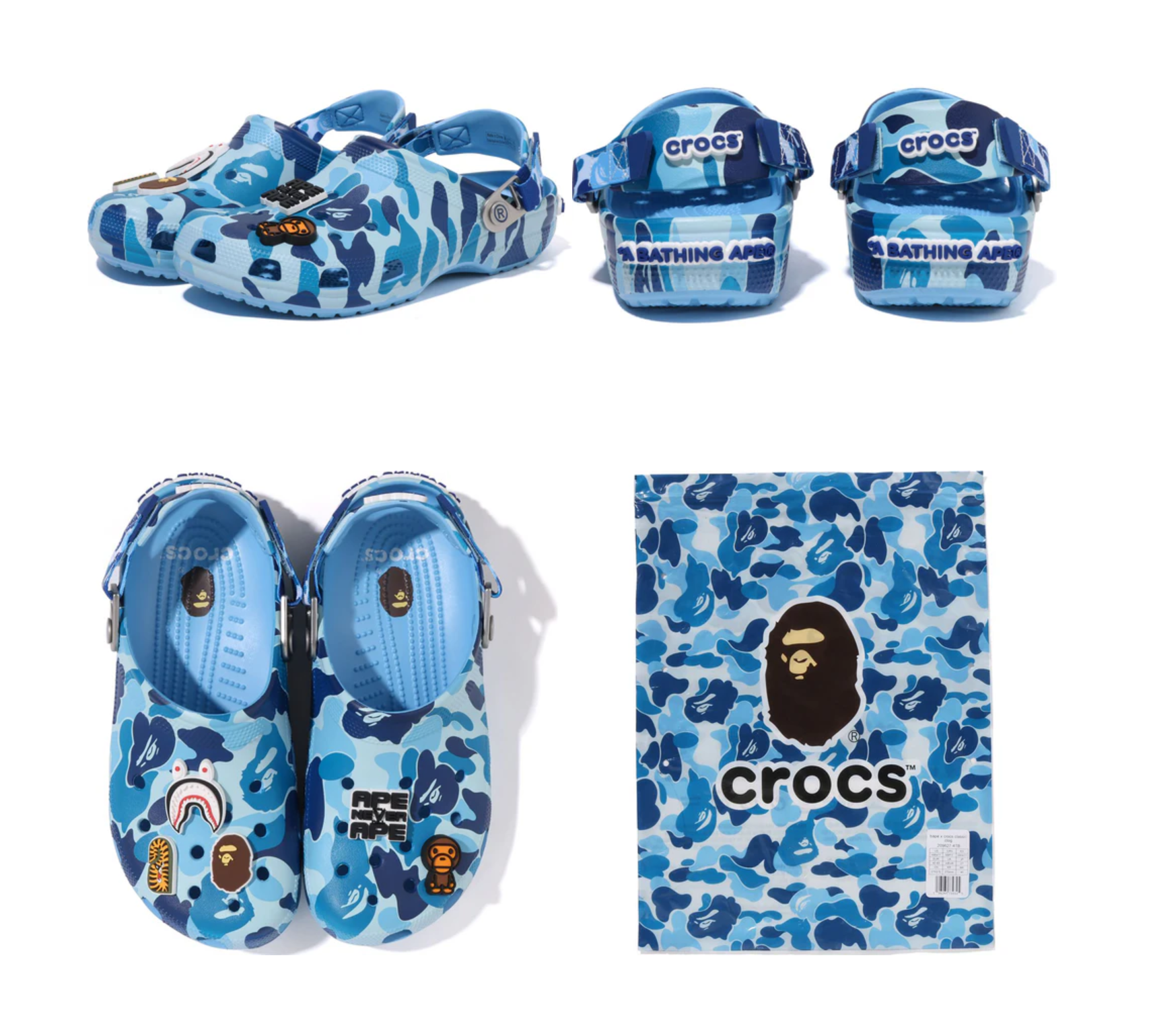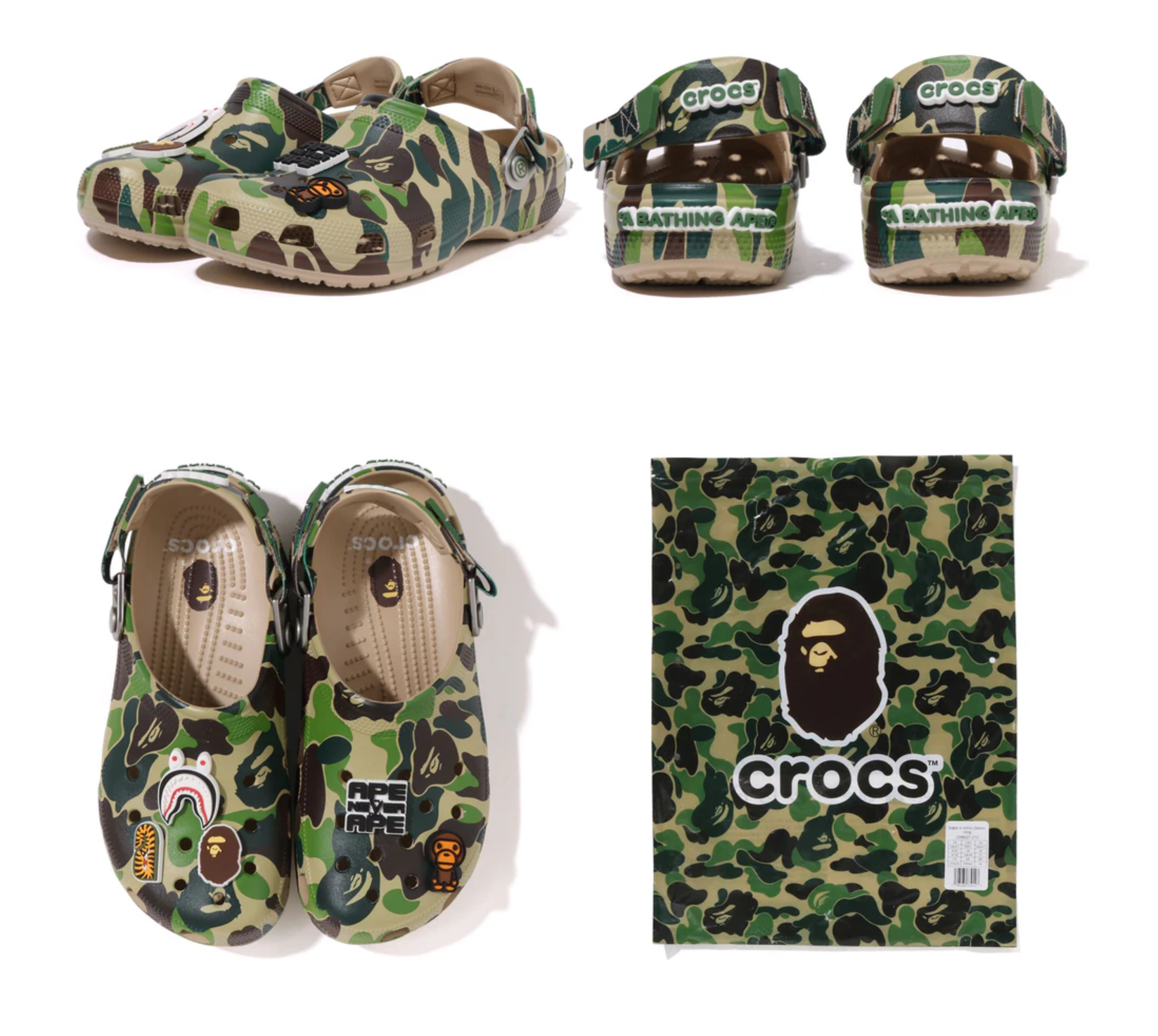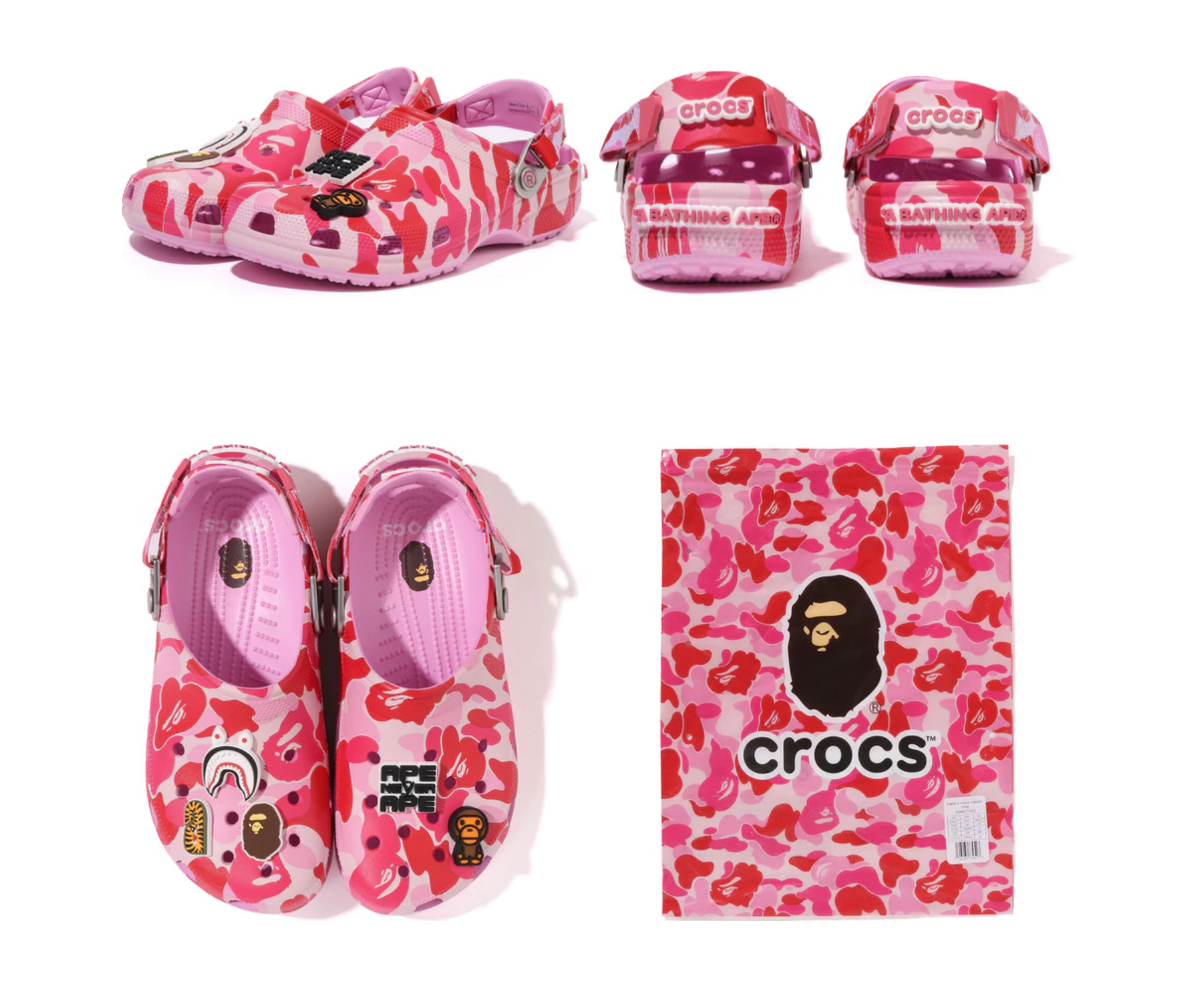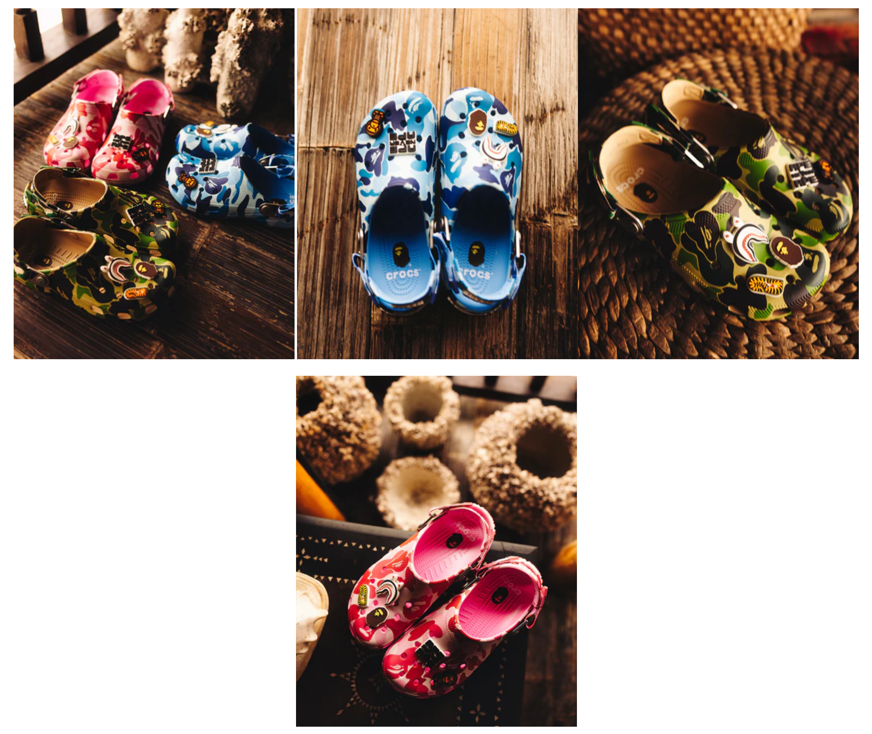 このコレクションは、2025年3月8日よりA BATHING APE®正規販売店、US.BAPE.COM、crocs.comにて数量限定で発売される。