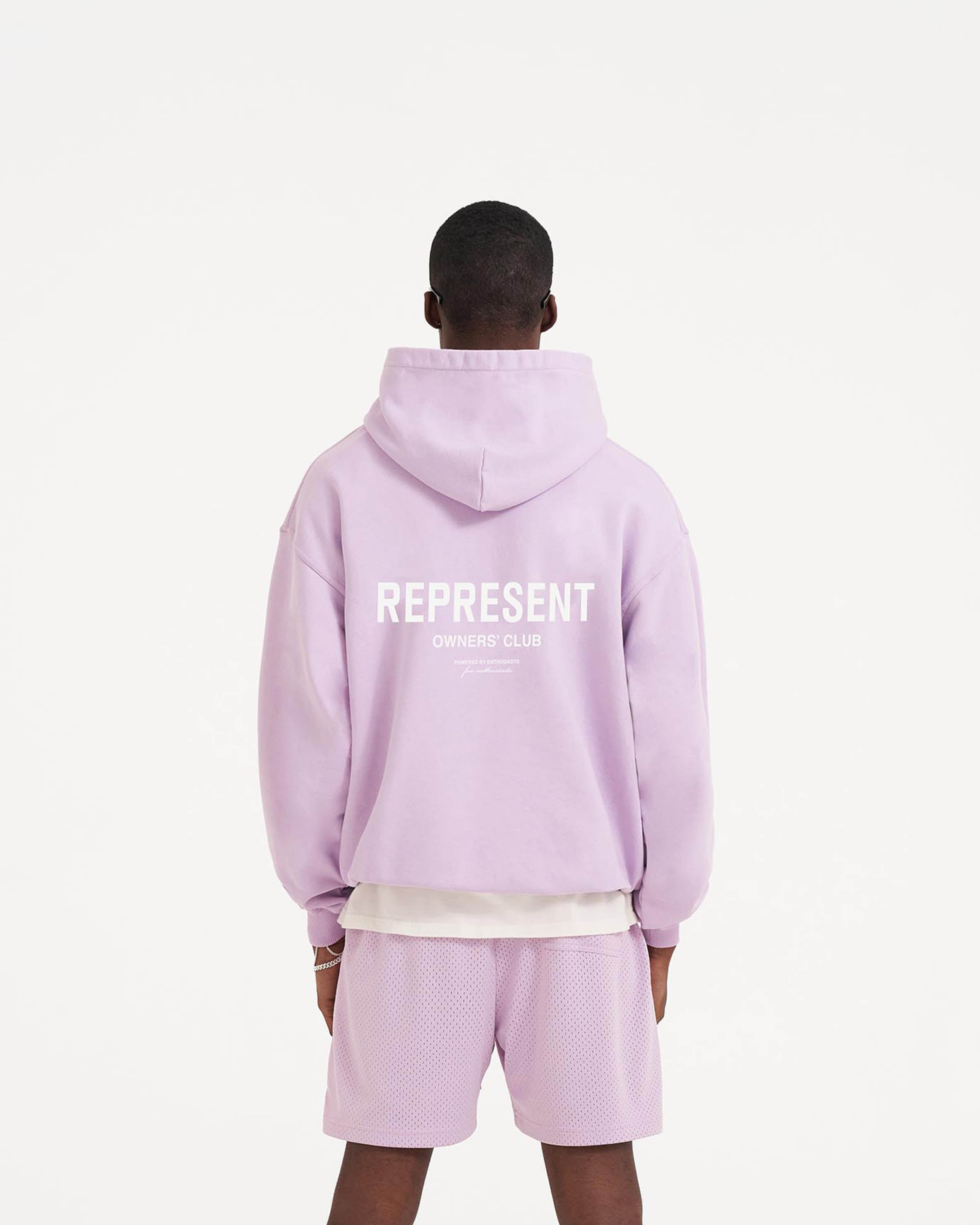Lilac hoodie in a heavy weight jersey cotton with a slightly oversized fit. Super soft, pre-shrunk and piece dyed for the ultimate jersey. Ribbed hem & cuffs. Owners Club print to the chest & back.