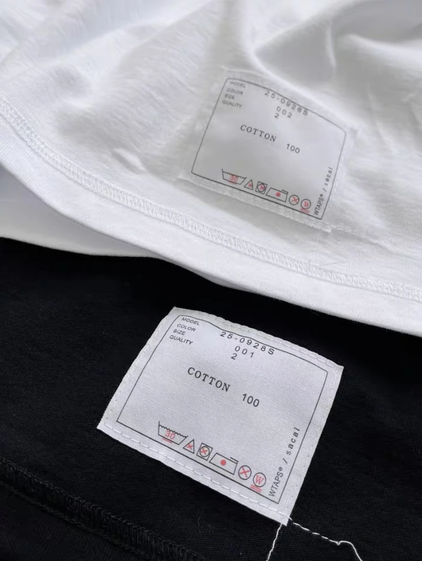 25SS Sacai Wtaps latest joint series custom-woven and dyed fabrics 14-count 280g washed cotton 0E fabric Great texture Imported environmentally friendly water-based printing on the back, two three-needle five-thread design at the neckline Size chart (cm) Size: S Shoulder width: 46 Length: 70 Bust: 114 Sleeve length: 21 Size: M Shoulder width: 48 Length: 72 Bust: 118 Sleeve length: 22 Size: L Shoulder width: 50 Length: 74 Bust: 122 Sleeve length: 23 Size: XL Shoulder width: 52 Length: 76 Bust: 126 Sleeve length: 24